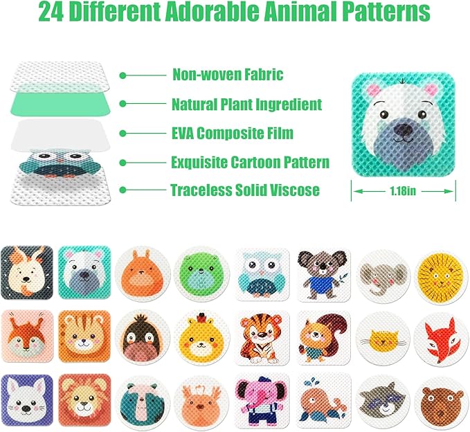 - Various Cute Animal Patterns : 24 different adorable animal patterns which are popular with children. These little stickers combine effective mosquito protection with delightful animal patterns, making them the perfect companions for both kids and adults.