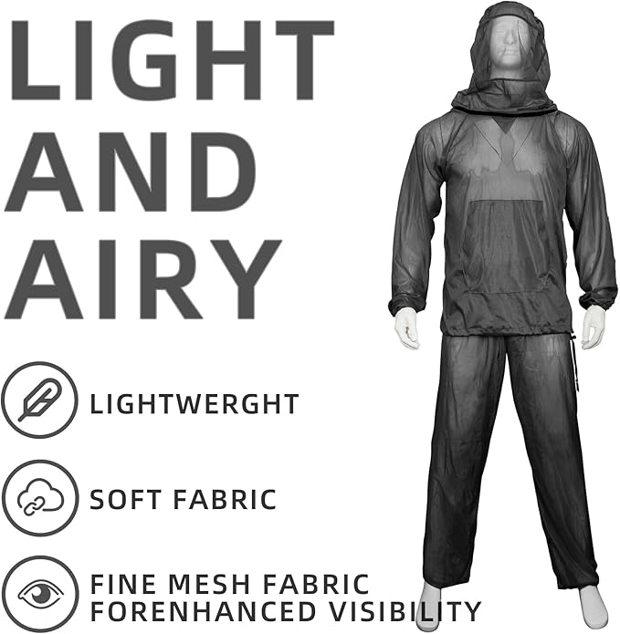 - 2 Piece suits includes hoodie + pants set, netting clothes are made of lightweight polyester mesh fabric, soft, durable, breathable.