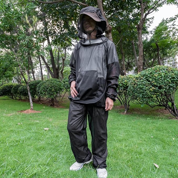 Mosquito Net Suit Camo Hunting Mesh Suit Bug Net Clothing with Hood Outdoor Protection No-See-Ums Garden Camping