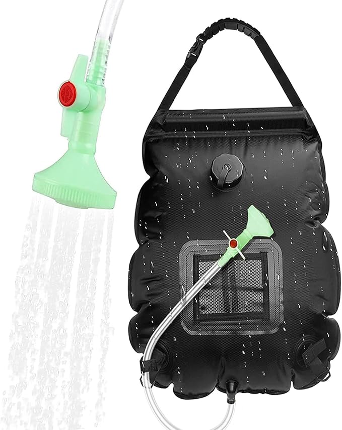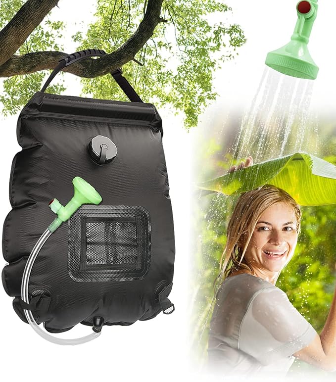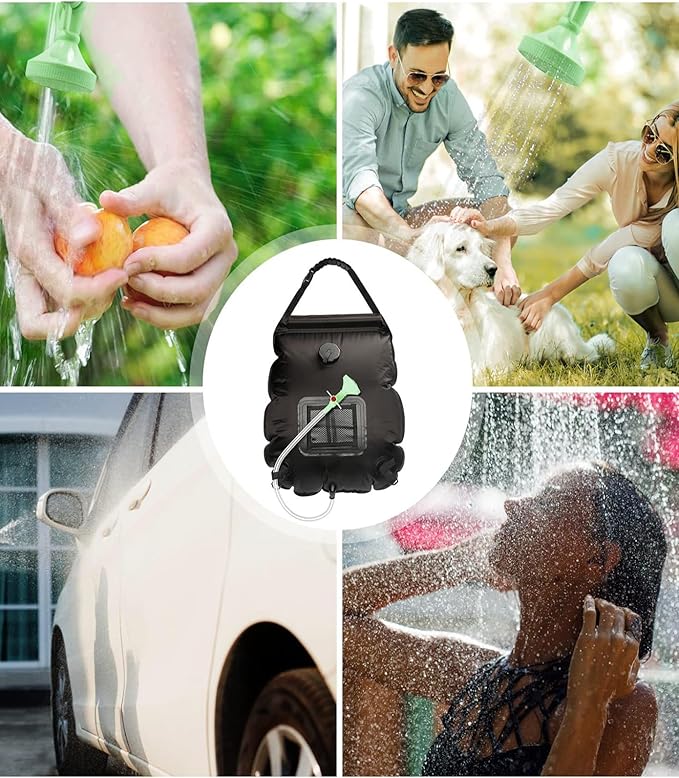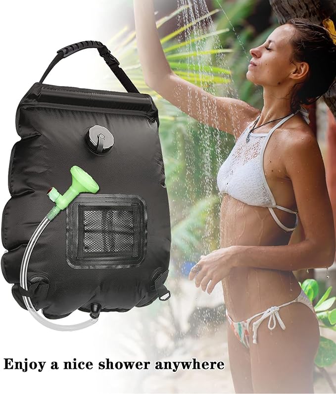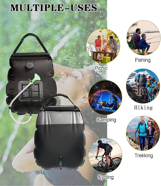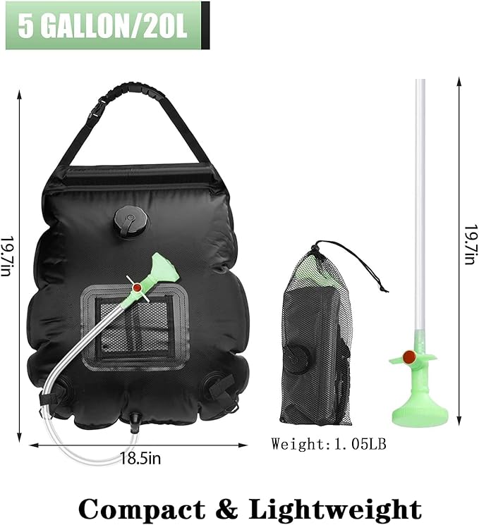 - ★【Compact & Lightweight】 With a larger water capacity of 5 gallons/20L, the solar shower bag is enough for about 3 showers. The water flow is fine and gentle to let you enjoy a better and refreshing shower anywhere, bringing you a better shower experience! Besides, our camping shower is so compact and lightweight that you can carry it in your backpack conveniently. The shower bag is only 0.98 Lbs and just 13x6x2 inches in package.