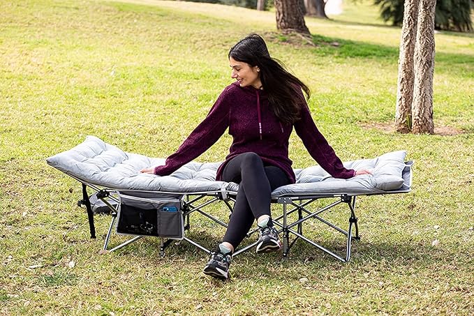 Zento Camping Cot and Mattress Folding Outdoor Travel Bed 4 Pack- Heavy Duty Max Load 450 LBS Premium Quality Cot Bed with Pad for Comfort Sleeping for Travel Home and Anytime Use