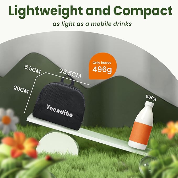 - Lightweight and Compact:Only 496g as light as a mobile phone. It folds down to a compact size of 23.5*20*6.5cm, making it effortless to store and carry anywhere