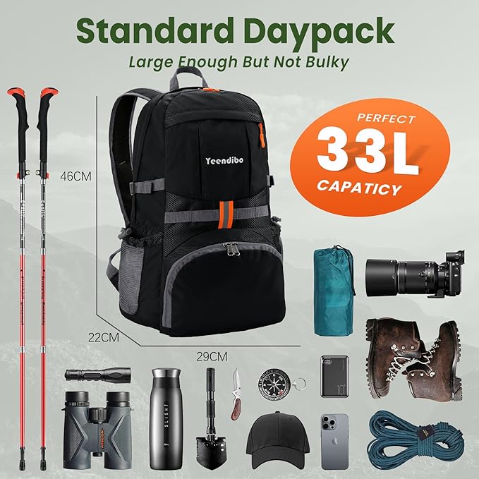 - Just the Right Capacity:With a 33L capacity and unfolded size of 29*22*46cm, this backpack great for day trips, hiking, camping, or short travels, offering ample space for your necessitie