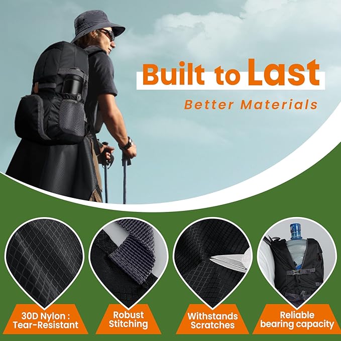 - Waterproof and Durable:Crafted from tear-resistant 30D nylon withstands scratches from branches and stones. Its water-resistant coating ensures that the contents inside remain dry, even in wet conditions