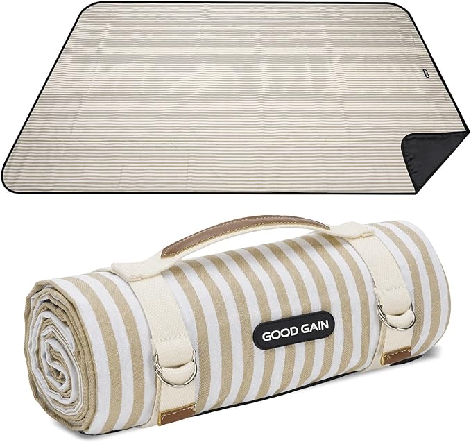 G GOOD GAIN Picnic Blankets Waterproof Extra Large - Outdoor Blanket Sand Free Foldable with Carry Strap for Beach, Camping, Park Grass, Hiking, Travel, Concerts, Indoor (Sand Yellow)