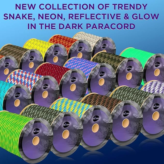 - NEW COLLECTION of unique vibrant paracord features lots of CAMO, NEON, REFLECTIVE & GLOW IN THE DARK colors.