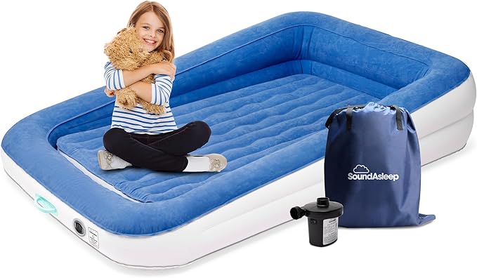 SoundAsleep Dream Series Kids Air Mattress with High Speed External Pump - Extra Tall Safety Bumpers - Portable, Toddler Blow up Bed for Kids - Inflatable Toddler Air Mattress for Home and Camping