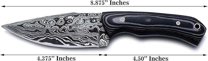 - 🗡:KNIFE DIMENSIONS: It is best as a Hunting, Survival, Camping, Skinning and Tracking Knife a complete Package of an Outdoor Adventures. 8.875 inch Total Length, 4.375 inches Blade and 4.5 inches Handle.