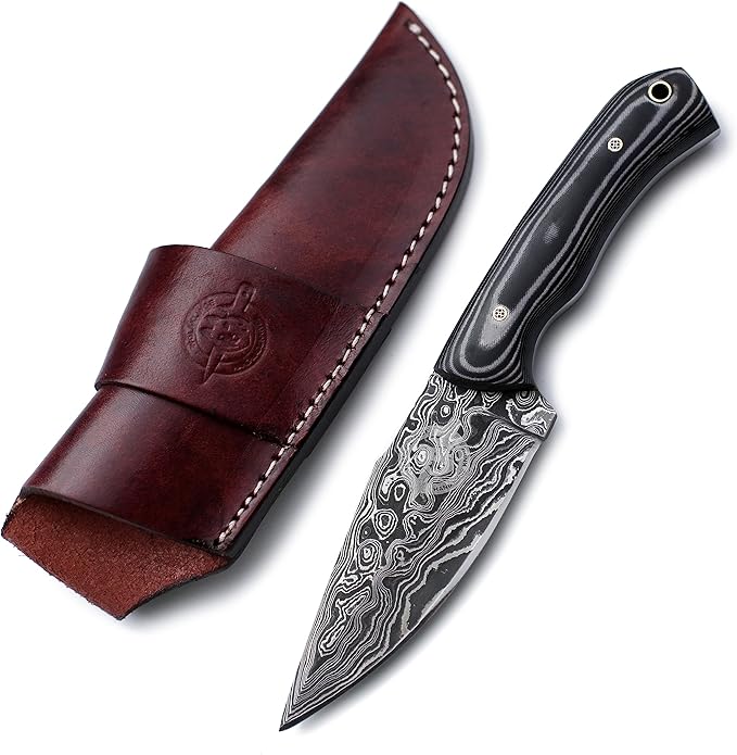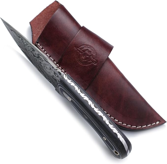 - 🎁:Sheath Carry Style:This premium vintage brown leather sheath, meticulously hand-carved, tooled, and hand-dyed, is designed for vertical carry on the right and OWB on the left. Featuring durable welted construction stitched with nylon thread, this high-quality, handcrafted protective leather belt sheath ensures safe and secure carry with easy access.Sheath Included with Every Knife Purchase.