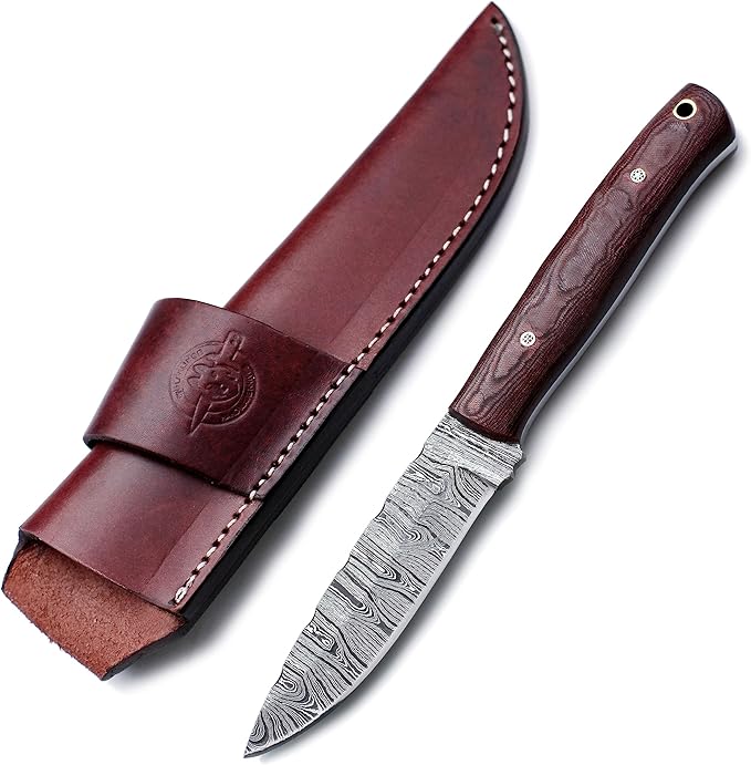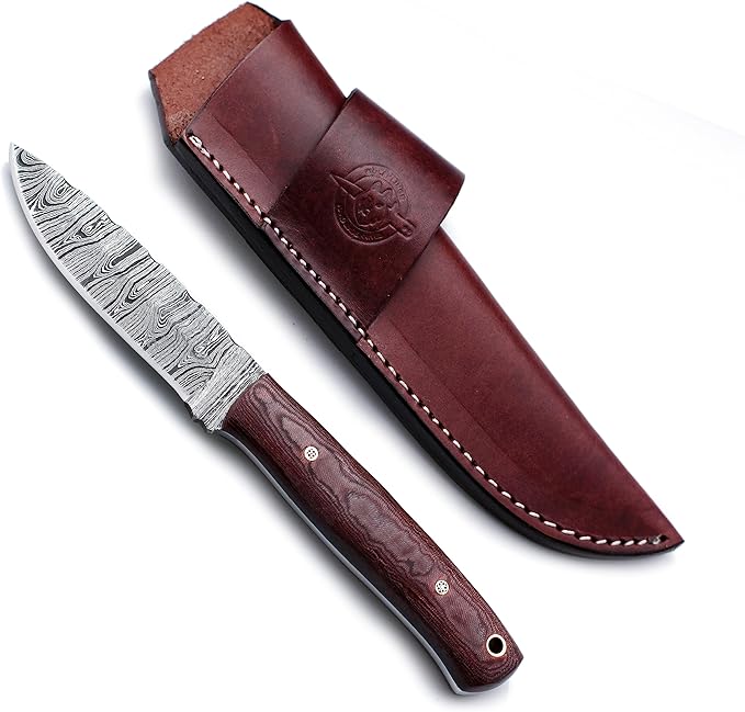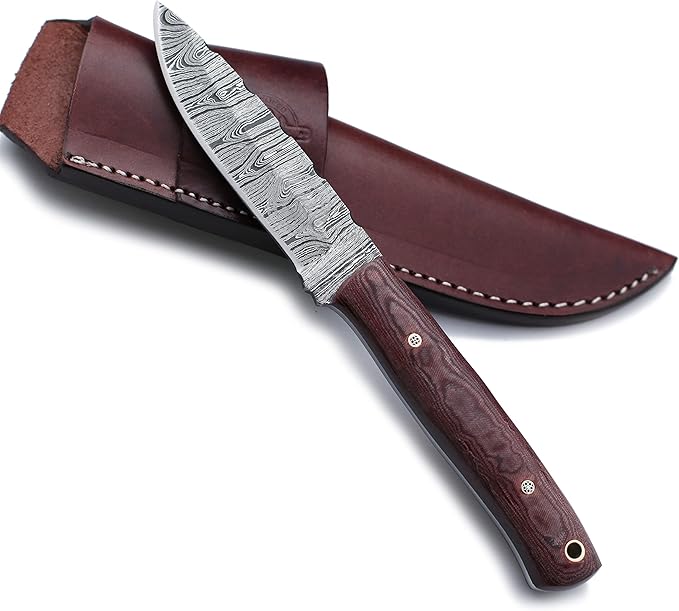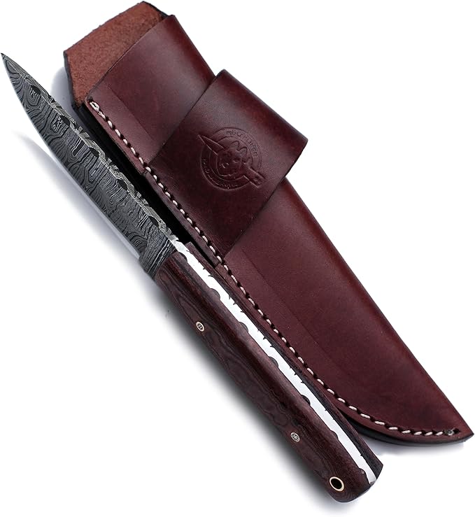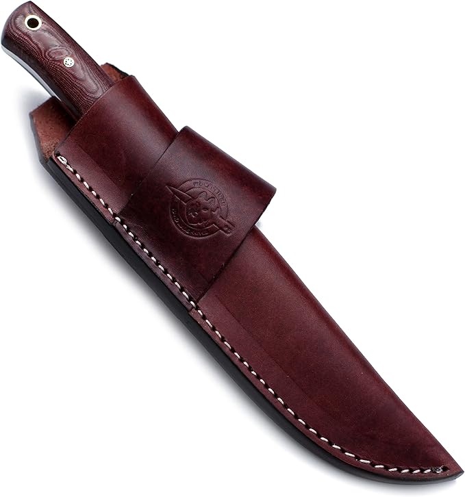- 🎁:SHEATH CARRY STYLE:Designed for vertical carry on the right and OWB on the left, this premium vintage brown leather sheath is meticulously hand-carved, tooled, and dyed, featuring durable welted construction stitched with nylon thread; this high-quality, handcrafted protective belt sheath ensures safe and secure carry with easy access.Sheath Included with Every Knife Purchase.