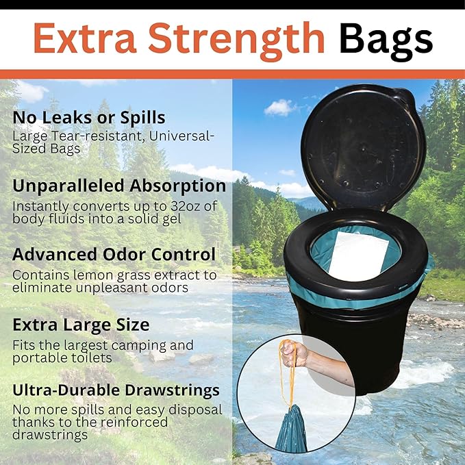 Portable Toilet Waste Bags Extra Strength with Super Absorbent Pad (12 Count) - With Advanced Odor Control System - Extra Large - Fits All Buckets and Camping Toilets (Extra Strength, 12)