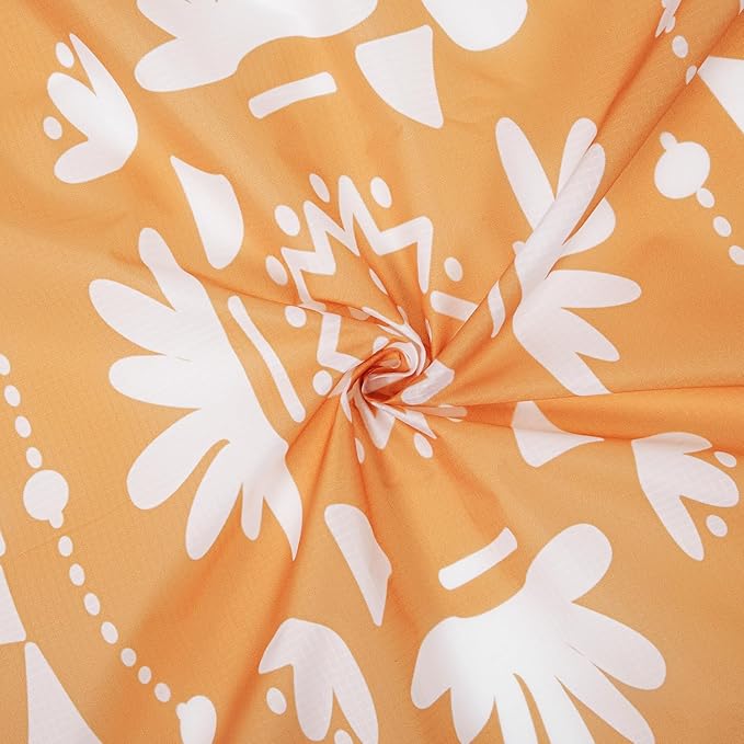 - Packs Away Easily - The polyester lightweight beach blanket doesn't take up as much space as a large picnic blanket does. The boho orange blanket folds away into a compact bag about iPad size, making it easy to store in a bag or pack in your basket for your next travel