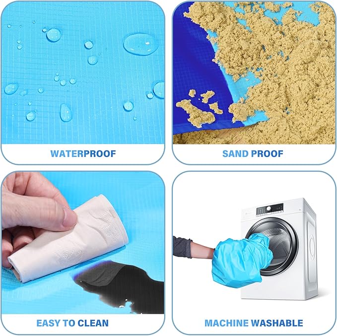 - 🏕️Beach Blanket Oversized:Good tear resistance,dry quickly.Also can be used as a rain shed,sunshade,tent,toddler crawl,emergency mat.Feel comfortable to lying down.Won't irritate your skin,better professional fabric sewing.
