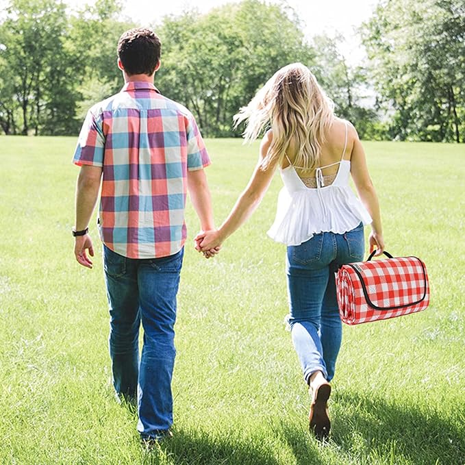 - Large picnic blanke : 80" x 60" sized picnic blanket, large enough to fit 2 to 4 adults with kids and picnic items. Easily folds up to a small size of 11.8" x 7.9" x 3.9" Only 1.65 lbs weight with a carry handle for easy carry. Convenient and space-saving.