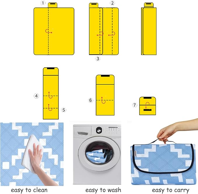 - Outdoor blanket, easy to clean : If your child accidentally spills food and drink on the mat, you can easily wipe off with a tissue/towel. And don't worry about pets running around on it with footprint, you can wash it. Durable picnic blankets, camping mat, beach mat, travel blanket.