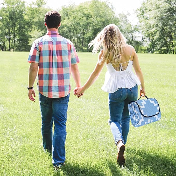 - Large picnic blanke : 80" x 60" sized picnic blanket, large enough to fit 2 to 4 adults with kids and picnic items. Easily folds up to a small size of 11.8" x 7.9" x 3.9" Only 1.65 lbs weight with a carry handle for easy carry. Convenient and space-saving.