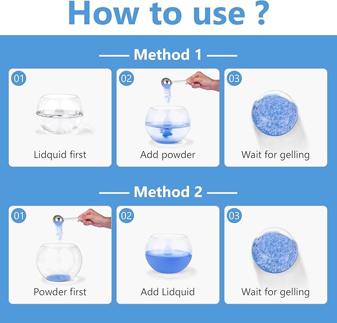 - High Tech Absorbent gel- 1 spoon (about 3/4 spoon, not full flat spoon) can treat about 0.13 Gal/496ml urine. (Average people urine at one time is 450ml.)