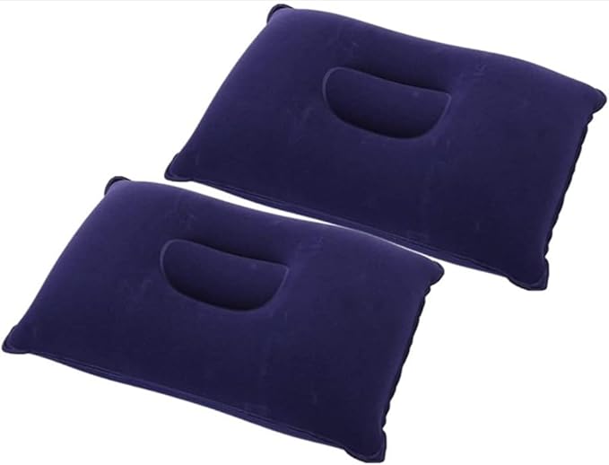 2 Pack Inflatable Pillow Blue Ultralight Pillow Camping Travel Pillow Small Squared Flocked Fabric Air Pillow for Camping and Hiking