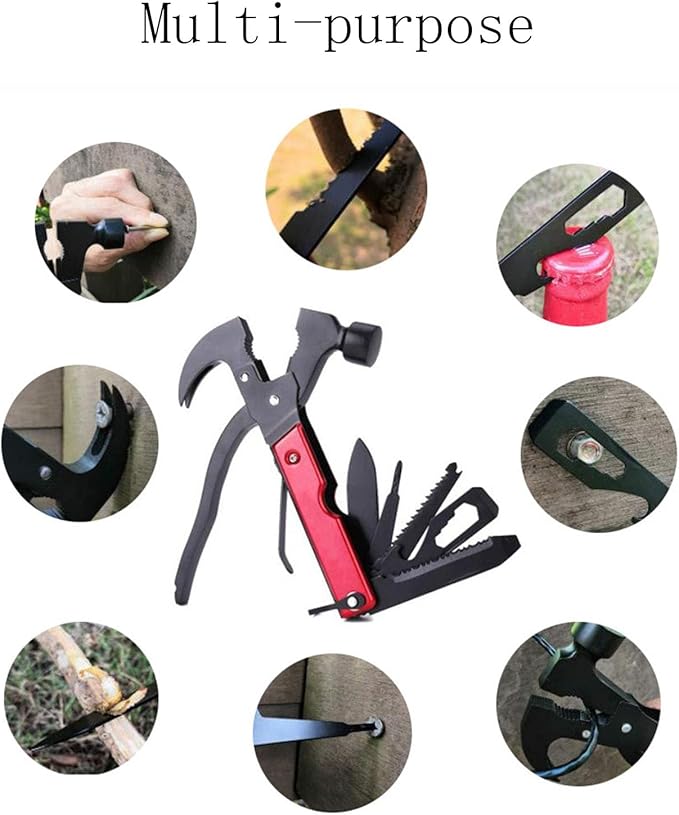 Multi Tool 16 in 1 Hammer Portable Gadgets Camping Gear Survival Tool,Birthday Christmas Gift for Men Boys,Hiking Outdoor、Window Breaking