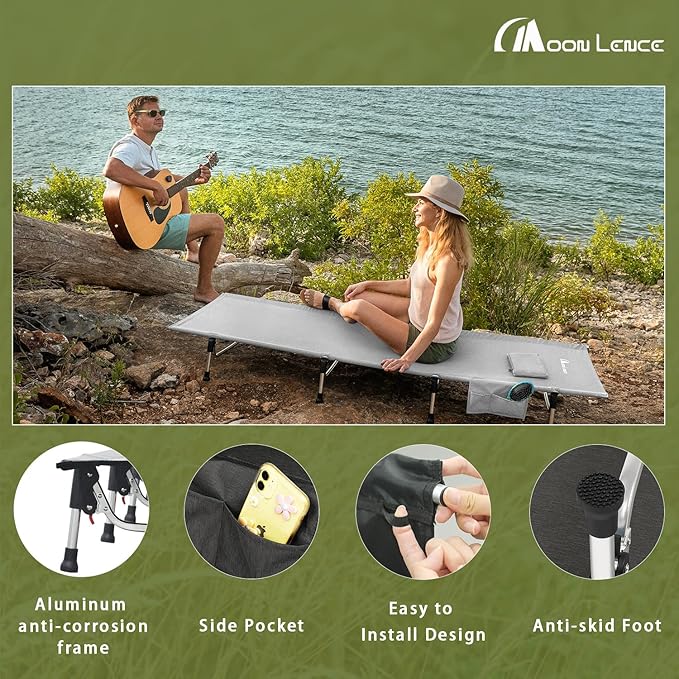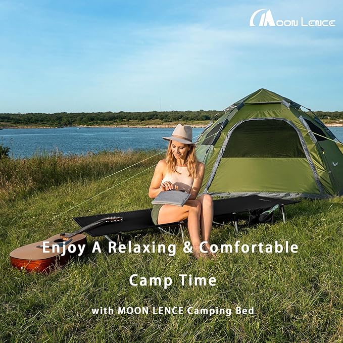 MOON LENCE Folding Camping Cot Outdoor Camping Bed Portable with Carry Bag Camp Cots for Adults for Hiking Backpacking Car Camping Outdoor Indoor Beach Use