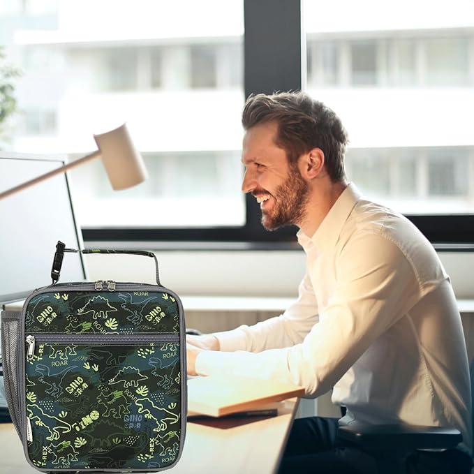 Lunch Box for Kids Boys Girls Men Women, Insulated Small Soft Cooler Lunch Bag Kit for School Work Picnic Travel - Reusable Portable lunchbox, Dinosaur Fossil Roar