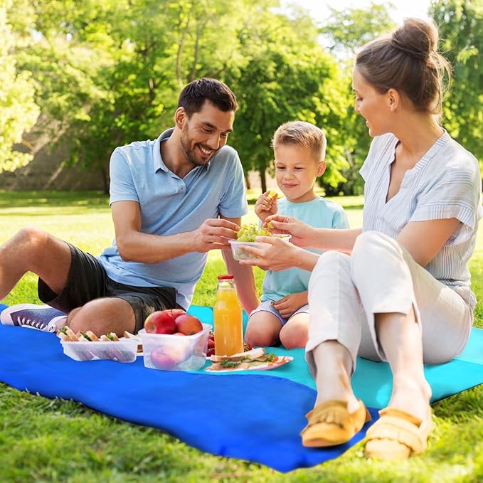 - Enjoy the outdoors with your loved ones. Our large blankets are designed for family travel and can accommodate up to 6 people. It measures 78"x82" and offers plenty of space for you and your friends to relax and soak up the sun. In addition, it is lightweight and comes with a backpack for easy transportation.