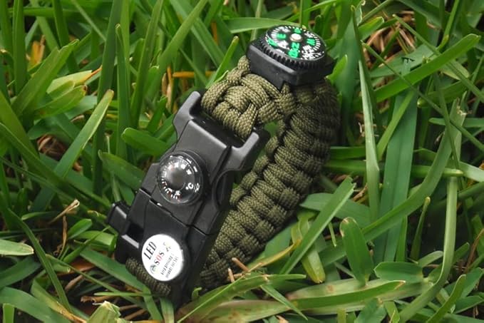 - ✅ 21IN 1 PREMIUM PARACAOD SURVIVAL BRACELET: Premium quality survival bracelet gear kits contains 21 of emergency tools such as: SOS LED Light,Flint Fire Starter(Magnesium Rod), Whistle, Thermometer, SIM Pin, Parachute Cord, Compass, T Shape Tool (Protection Cover With Cutting Tool), Wrench, Bottle Opener, Can Opener, Screwdriver ...You can always be prepared and protection for all kinds of outdoor wilderness adventures.