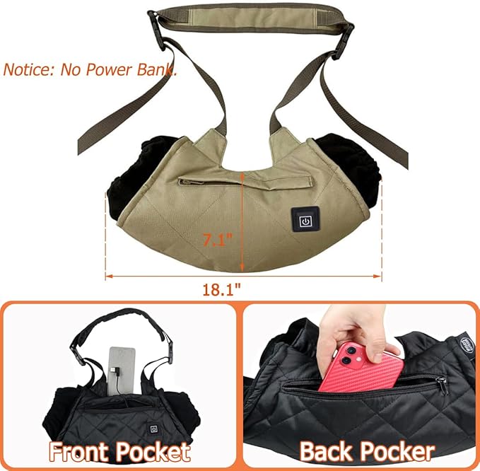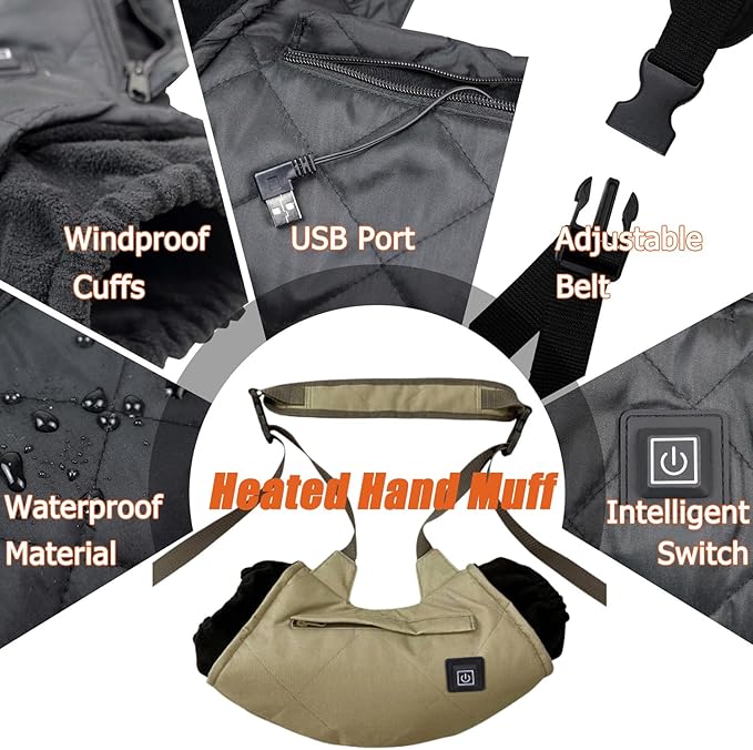 - 【Heated Hand Warmer Pouch】In many winter outdoor activities, how to keep your cold hands warm in cold weather? This heated hand muff solves your problems. It contains heating pads, which can heat up quickly after plugging in the power bank 【NO POWER BANK】. The portable hand muff is the perfect accessory to keep your hands warm while staying active in cold winter weather.