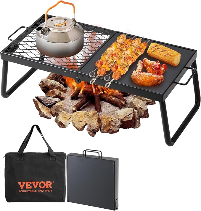 VEVOR Folding Campfire Grill, Heavy Duty Steel Mesh Grate, 22.4" Portable Camping Grates Over Fire Pit, Camp Fire Cooking Equipment with Legs Carrying Bag, Grilling Rack for Outdoor Open Flame Cooking