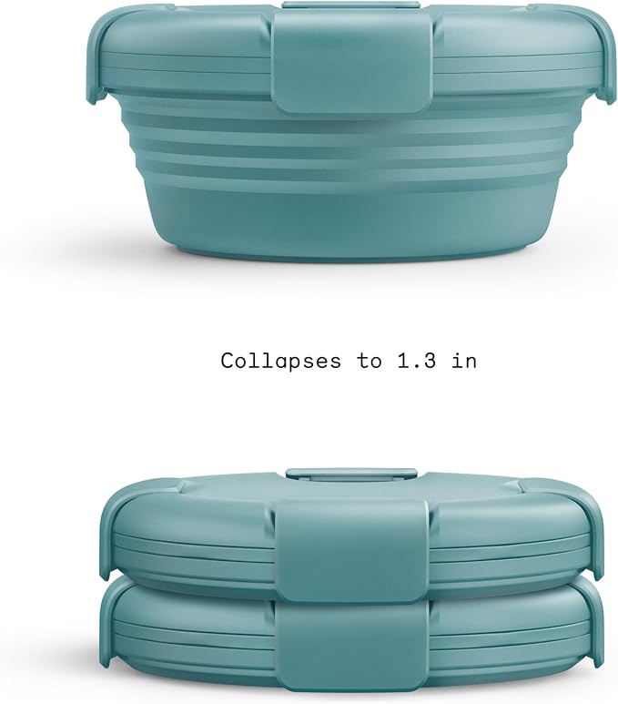 - Collapsible bowl: It’s literally never been easier (or more fun) to prep, store, and take food on the go! This compact bowl collapses down to just 1.3 inches. The 36 oz Stojo Bowl holds up to 4.5 cups of eats and is made for the kitchen as much as the commute. It stores nested and flat to save space, then pops open to upgrade your meal prep, leftovers, and work lunches. This Aquamarine Blue container is going to look right at home in your kitchen cabinet.