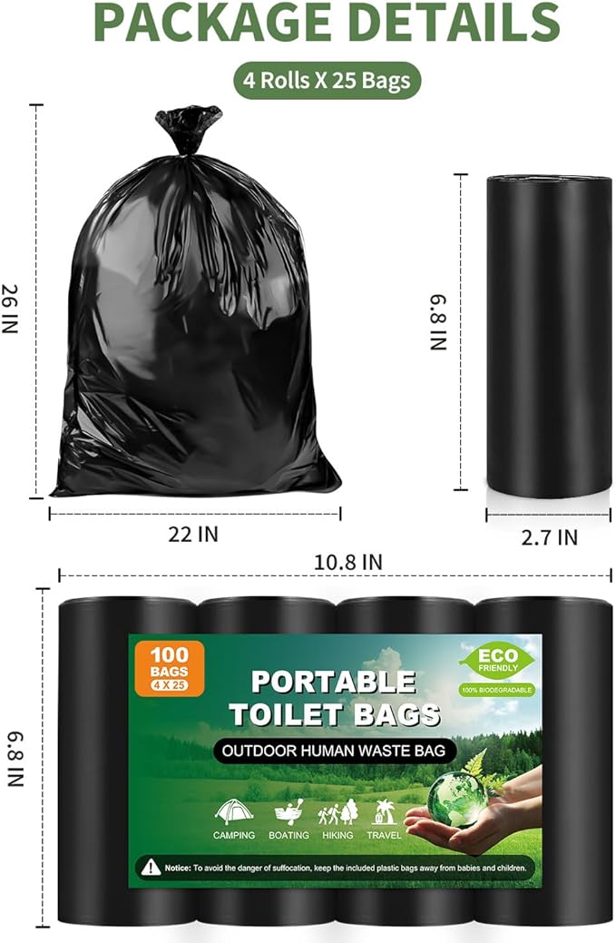 100 Portable Toilet Bags, Thick Biodegradable Camping Toilet Bags for Portable Potty, 8 Gal Compost Toilet Waste Bags Potty Bags for 5 Gallon Bucket Toilet Seat Adults Outdoor, 1.1 Mil