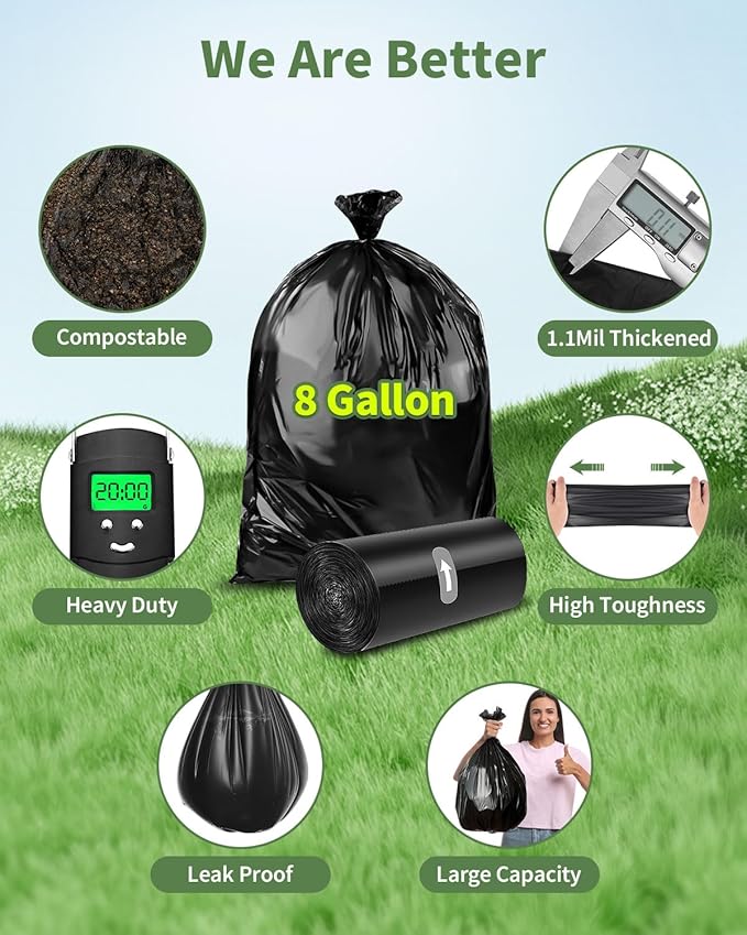 - 𝐏𝐎𝐑𝐓𝐀𝐁𝐋𝐄 & 𝐌𝐔𝐋𝐓𝐈𝐏𝐔𝐑𝐏𝐎𝐒𝐄 - Our camping toilet bags come in Convenient Rolls that are easy to carry and store. Whether you're camping, traveling, boat or just need a reliable compost bag for your home, our biodegradable garbage bags are the perfect solution. Use them for camping toilet seat, kitchen waste, portable toilet for adults, portable camping toilet, rv toilet, cat litter bags and more. With 100pcs compost toilet bag in each pack, you'll have plenty for all your waste disposal needs.