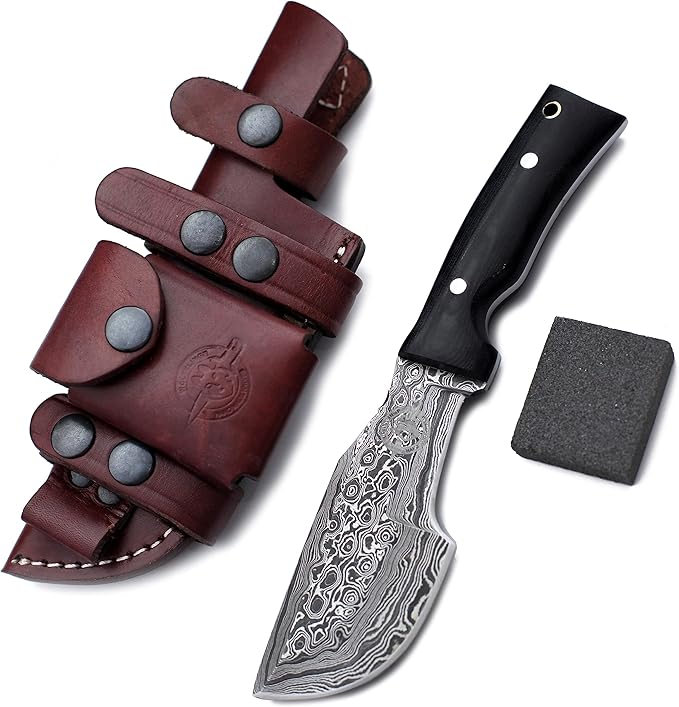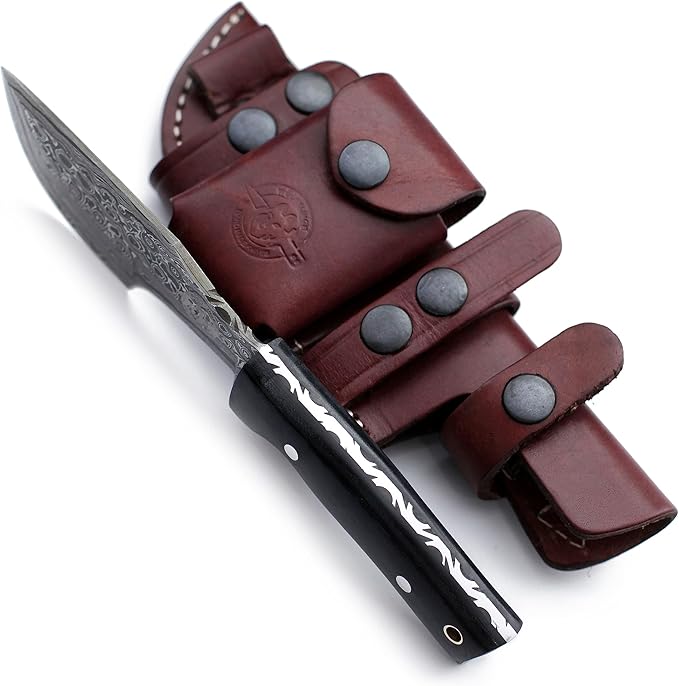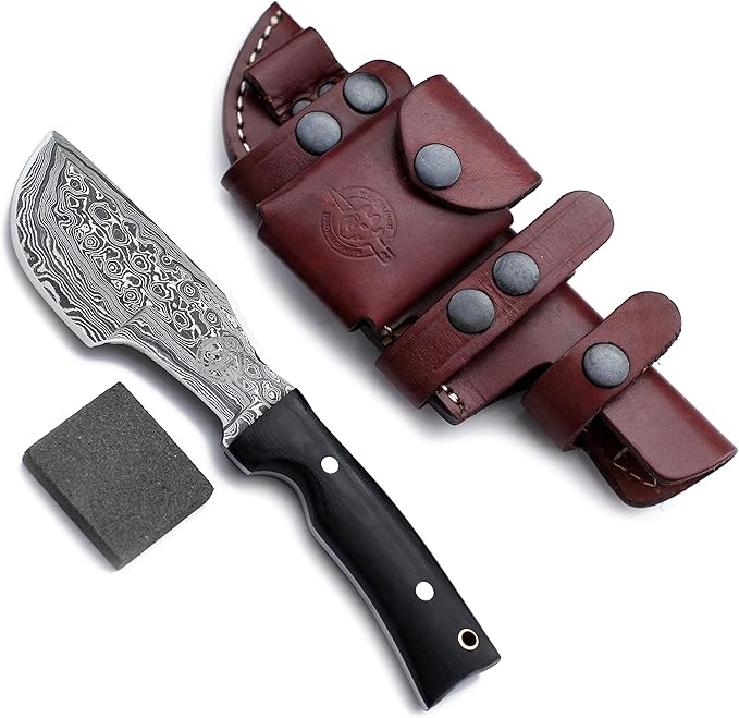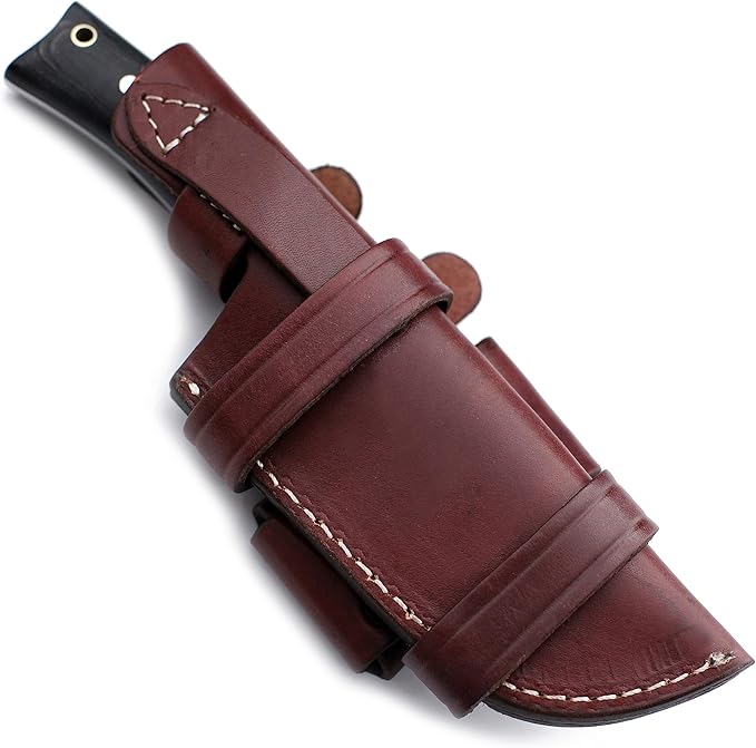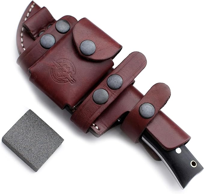 - 🎁:Sheath Carry Style: Left Hand Cross Draw & Right Hand Vertical Scout Carry and Right OWB (Outside the Waist Band). It is meticulously hand-carved, tooled, and hand-dyed, with welted construction and nylon thread stitching for durability. This Handcrafted Leather Sheath ensures safe and secure carry with convenient access. Sheath included with every knife purchase & Sharpening Stone as a bonus.