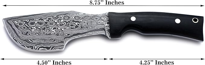 - 🗡:KNIFE DIMENSIONS: It is best as a Hunting, Survival, Camping, Fishing and bushcrafting and Tracking Knife a complete Package of an Outdoor Adventures. 8.75 inch Total Length, 4.5 inches Blade and 4.25 inches Handle.