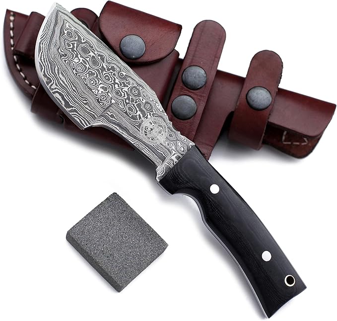 Handmade Damascus Steel Knife for Hunting, Survival, Camping, Bushcraft, Fishing, Fixed Blade, Tracker Knife with Full Tang Micarta Handle, Leather Sheath and Sharpening Stone - WKD-799