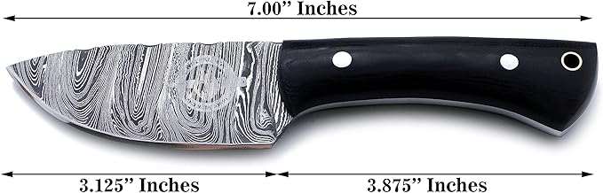 - 🗡:KNIFE DIMENSIONS: It is best as a Hunting, Survival, Camping, Skinning and Tracking Knife a complete Package of an Outdoor Adventures. 7 inch Total Length, 3.125 inches Blade and 3.875 inches Handle.