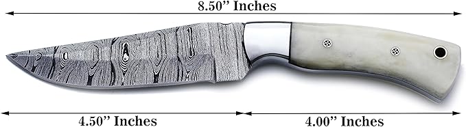 - 🗡:KNIFE DIMENSIONS: It is best as a Hunting, Survival, Camping, Skinning and Tracking Knife a complete Package of an Outdoor Adventures. 8.5 inch Total Length, 4.5 inches Blade and 4 inches Handle.