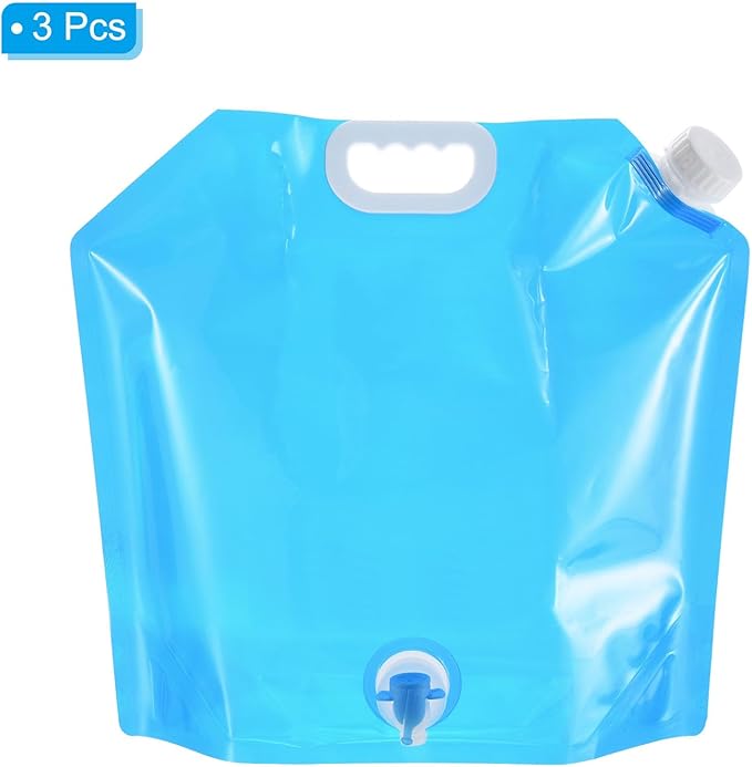 PATIKIL 2.6 Gallon Collapsible Water Container Bag with Spigot, 3 Pack PE Folding Water Jug Carrier for Camping, Hiking, Emergency Water Storage, Blue