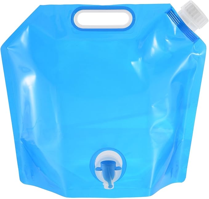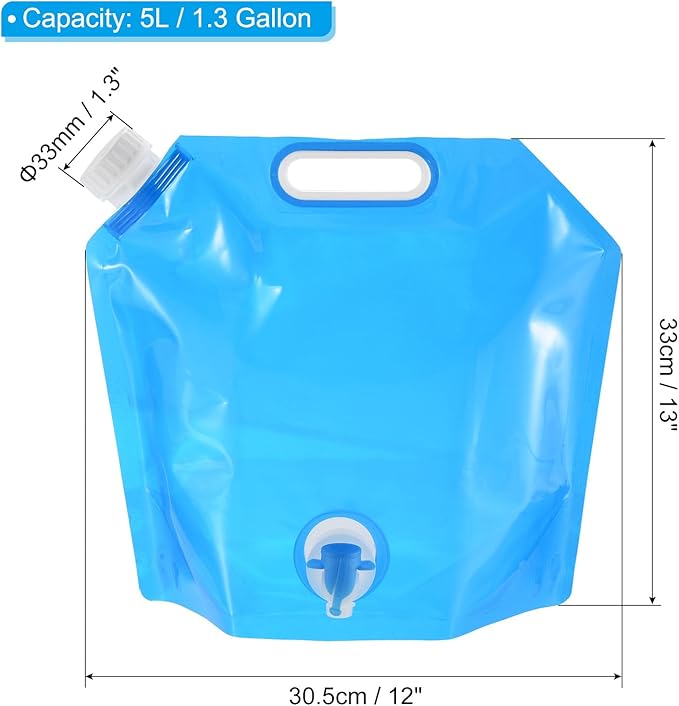 PATIKIL 1.3 Gallon Collapsible Water Container Bag with Spigot, PE Folding Water Jug Carrier for Camping, Hiking, Emergency Water Storage, Blue