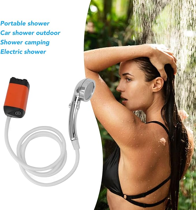Haofy Portable Camping Shower, 3 Gears Electric Camp Shower with Rechargeable Outdoor Shower Pump and Shower Head (Orange)