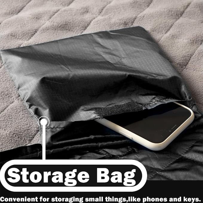 - EASY TO CARRY & EASY STORAGE - We have a waterproof bed blanket storage bag which allows you to fold and store your camping blanket and take it with you in just two minutes. The blanket has a storage pouch for storing small items such as keys and mobile phones that can easily be dropped when camping, and this pouch is located underneath the blanket for aesthetic appeal and security.