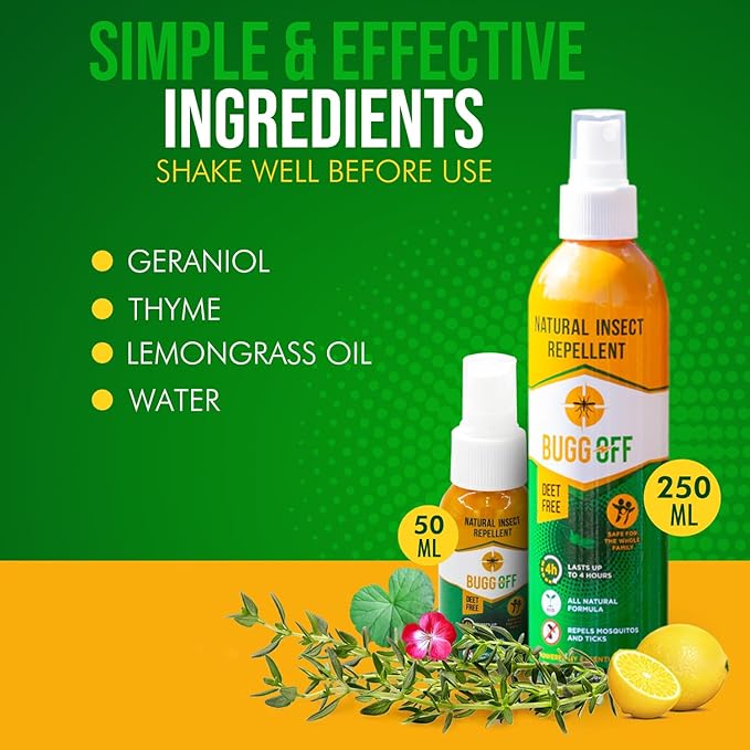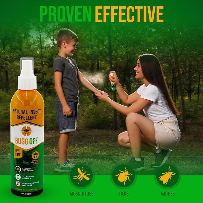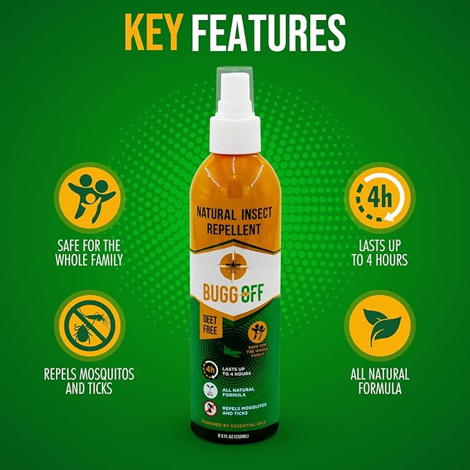 - DEET FREE BUG SPRAY – Unlike DEET bug sprays, Buggoff spray protects you from gnats, black flies, no-see-ums, and mosquitoes using lemongrass essential oil – no harmful chemicals.