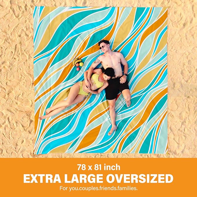 Beach Blanket Oversized Extra Large 78" X 81",Waterproof Sandproof Beach Blanket 1-7 Adults Lightweight Durable for Travel Camping Hiking Picnic
