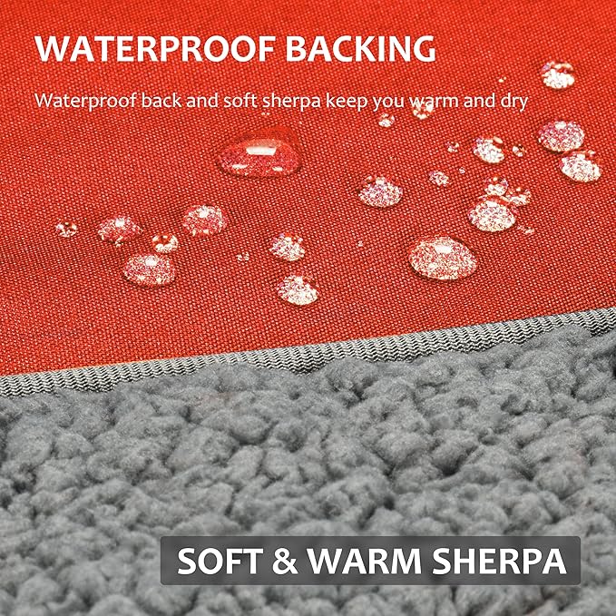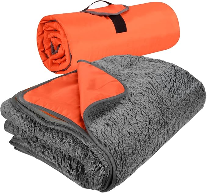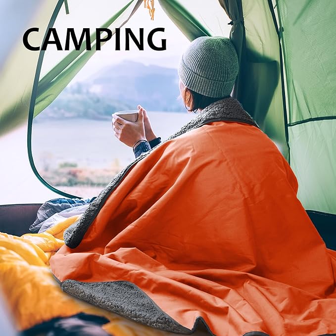 Tirrinia Outdoors Waterproof Throw Blanket, Sherpa Fleece Stadium Windproof Mat for Camping, Picnic, Traveling, Boat, Football - Machine Washable, Orange