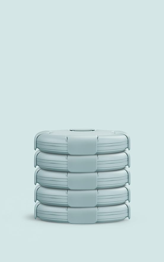 STOJO Collapsible Bowl 5 Set - Aquamarine, 36oz - Reusable Silicone Bowl for Hot and Cold Food - Perfect for Travel, Meal Prep, To-Go Lunch, Camping & Hiking - Microwave & Dishwasher Safe