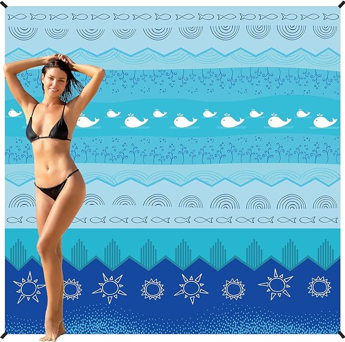 - 🏕️Beach Blanket Oversized:Good tear resistance,dry quickly.Can also be used as a rain shed,sunshade,tent,toddler crawl,emergency mat.Feel comfortable to lying down.Won't irritate your skin,better professional fabric sewing.