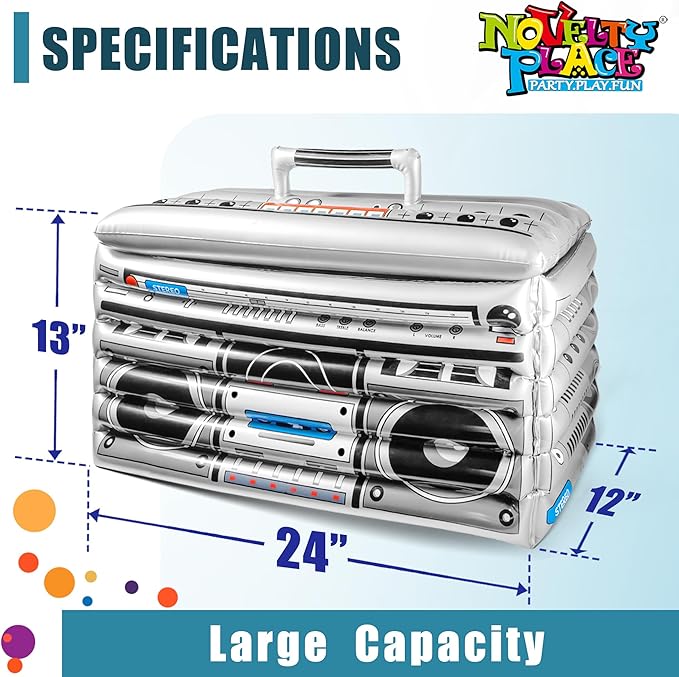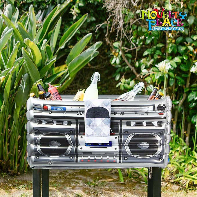 Novelty Place Inflatable Boombox Cooler - Large Capacity Ice Bucket Drink Cooler Blow Up Stereo Decoration for 80s 90s Themed Retro Party, Outdoor Gathering, Pool Celebration, and BBQ