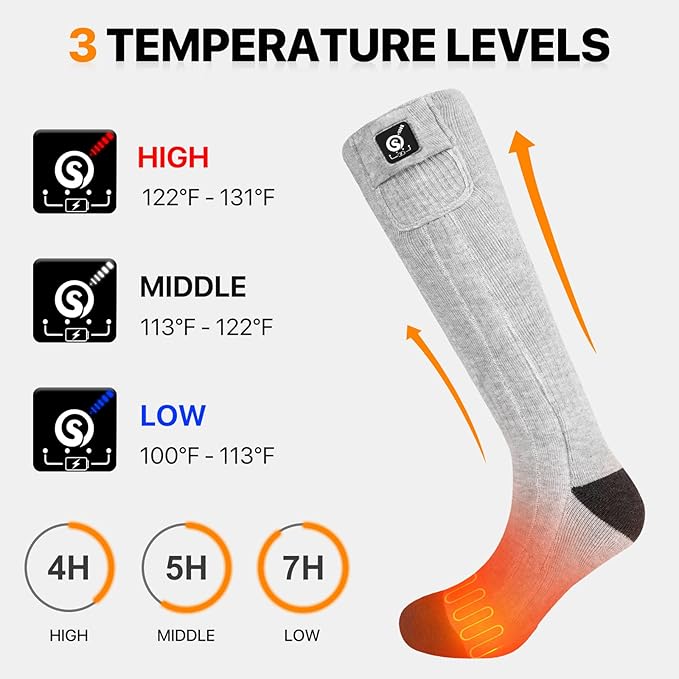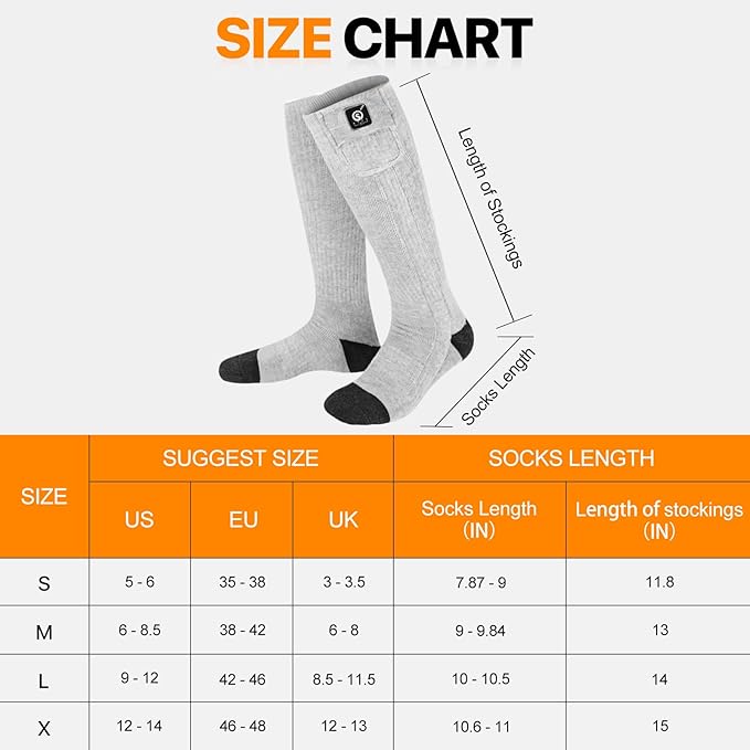 - 【Upgrade For A Perfect Fit】Snow Deer heated socks increased wire softness by 10%, ensuring a more comfortable high elasticity. Prevent slipping but do not restrict your legs.