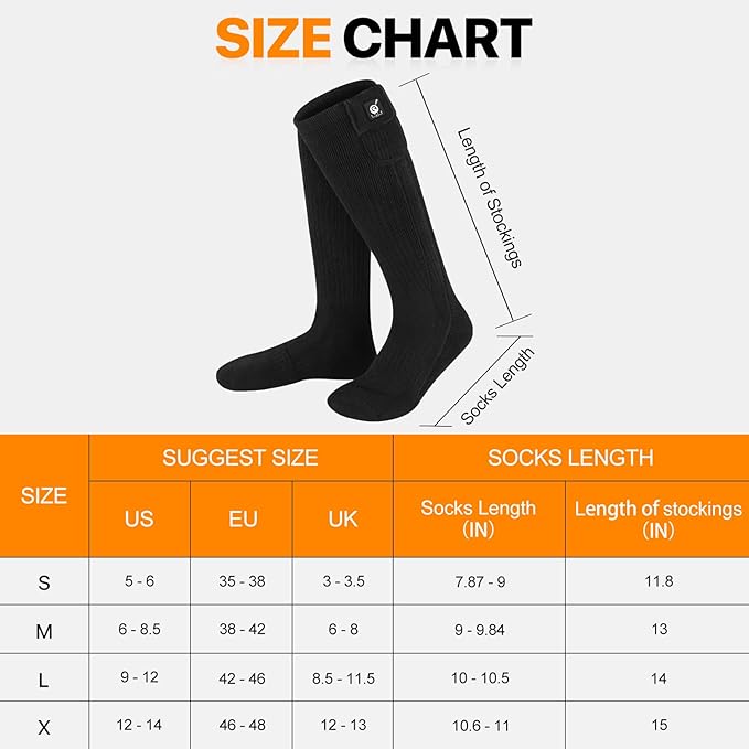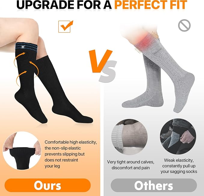 - 【Upgrade For A Perfect Fit】Snow Deer heated socks increased wire softness by 10%, ensuring a more comfortable high elasticity. Prevent slipping but do not restrict your legs.