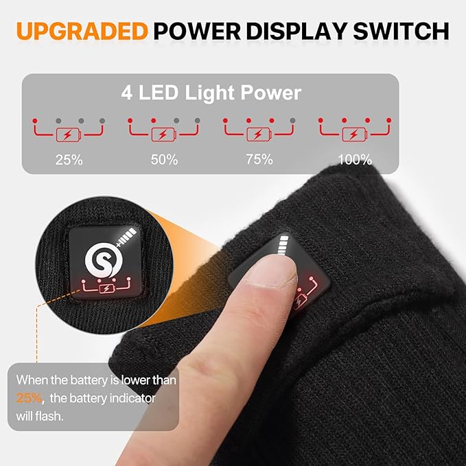 - 【Long Working Hours of Adjustable Heat】The electric heated socks can last for 2-7 hours. Upgrade switch with a power indicator, 3 levels of temperature adjustment can meet your warmth needs in different weathers.